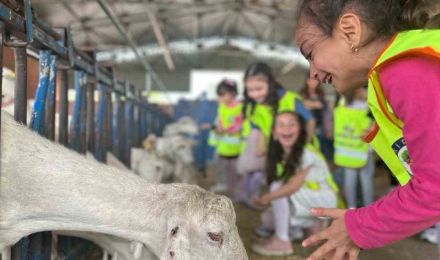 İzmir'de Bornova İlçe Tarım ve Orman Müdürlüğü'nün başlattığı "Tarımın Kalbinde Çocuklar" projesi kapsamında Orkide Anaokulu öğrencileri, sütün çiftlikten sofraya uzanan yolculuğunu adım adım deneyimledi.