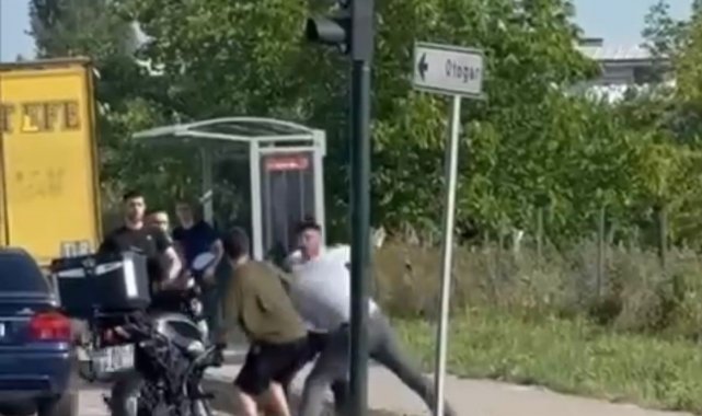 Bursa'da trafikte yaşanan yol verme tartışması kısa sürede kavgaya dönüştü. Anayolu boks ringine çeviren iki sürücü araçlarını durdurup birbirine saldırdı. O anlar kameraya yansıdı.