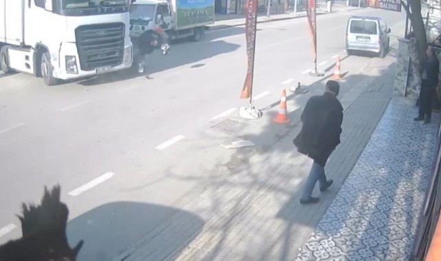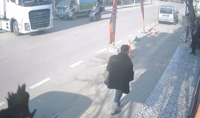 Kaza, merkez Osmangazi ilçesinde meydana geldi. Edinilen bilgiye göre, seyir halindeki motosiklet ara sokaktan anayola çıkan tırla çarpıştı. Kazanın şiddetiyle motosiklet sürücü düşerek yaralandı. O anlar çevrede bulunan bir iş yerinin güvenlik kamerasına yansıdı.