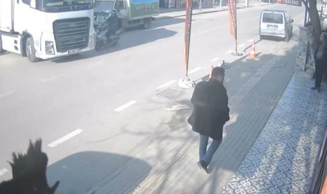 Anayola çıkan tıra, motokurye böyle çarptı