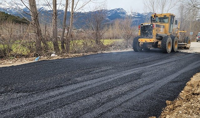 Andırın'da yoğun yağışlar nedeniyle bozulan yola sıcak asfaltla tamir