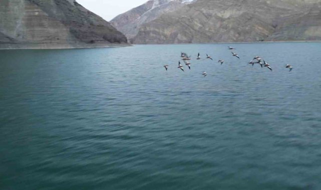 Erzurum'un Uzundere ilçesinde bulunan Tortum Gölü, göçmen kuşların uğrak noktalarından biri olmaya devam ediyor. Son yıllarda göç etmeyi bırakıp bölgede üremeyi tercih eden angıt kuşları, gölün semalarında görsel bir şölen sunuyor.