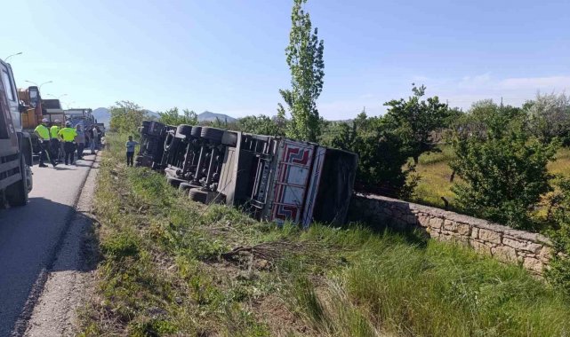Angus yüklü tır devrildi, 1 kişi yaralandı