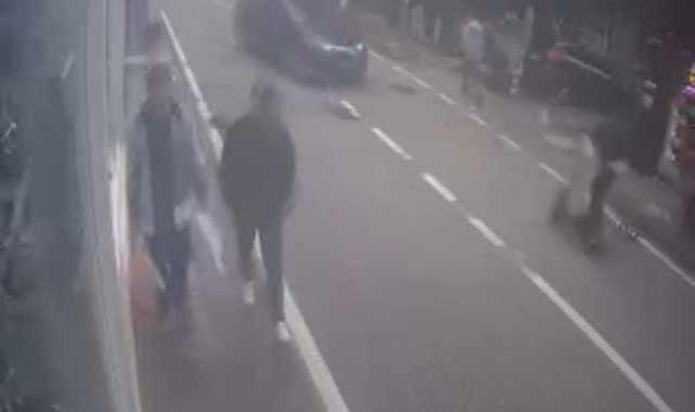 Bursa'da ani dönüş yapan bir otomobil, scooter ile ilerleyen kişiye çarptı. Kaza anı güvenlik kamerasına yansıdı.