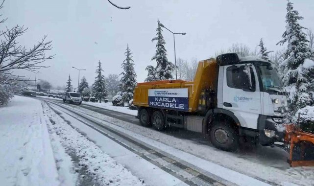 Kocaeli Büyükşehir Belediyesi ekipleri yolları açık tutmak için gün boyu mesai harcıyor.