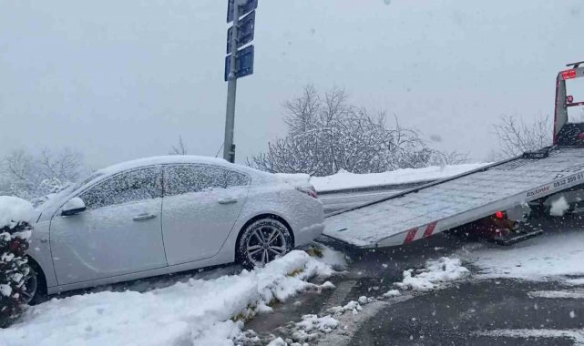 Kocaeli'nin özellikle yüksek kesimlerinde yoğun kar yağışı hakim olurken, sürücüler yollarda zor anlar yaşıyor.