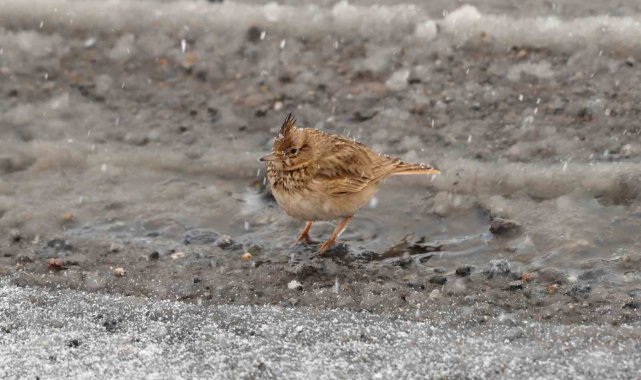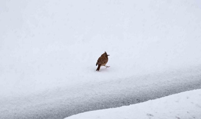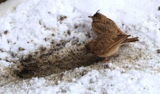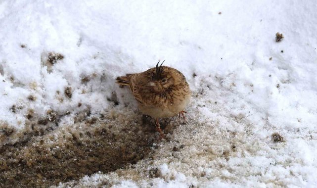 Bitlis'te nisan ortalarında etkili olan yoğun kar yağışı ve dolu, adeta kışı geri getirdi. Hava sıcaklıklarının zaman zaman sıfırın altına düşmesiyle birlikte bazı bölgelerde 20 ila 50 santimetrelik kar birikintileri oluştu. Bahar aylarıyla birlikte kırlarda yoğunluğu artan ve açık arazilerde beslenen tepeli toygar kuşları, bu süreçte zorlu bir sınav veriyor.