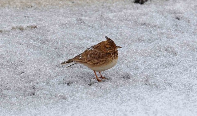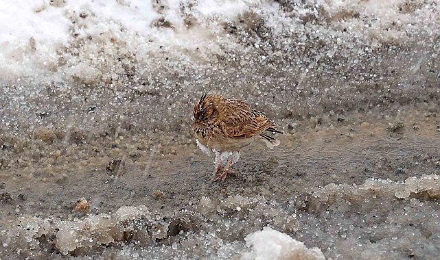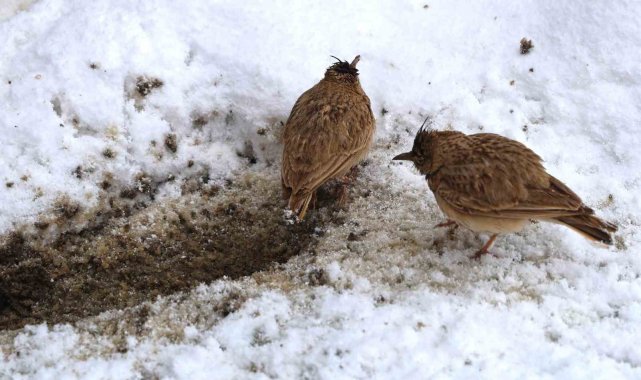Bitlis'te nisan ortalarında etkili olan yoğun kar yağışı ve dolu, adeta kışı geri getirdi. Hava sıcaklıklarının zaman zaman sıfırın altına düşmesiyle birlikte bazı bölgelerde 20 ila 50 santimetrelik kar birikintileri oluştu. Bahar aylarıyla birlikte kırlarda yoğunluğu artan ve açık arazilerde beslenen tepeli toygar kuşları, bu süreçte zorlu bir sınav veriyor.