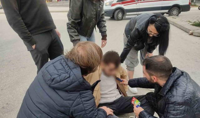 Eskişehir'de yolun karşısına geçmeye çalışan ve şeker hastası olduğu öğrenilen bir gencin baygınlık geçirerek aniden yere yığılması korkuttu.