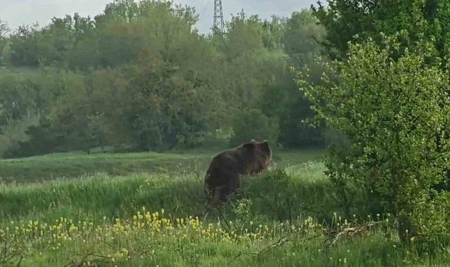 Yolun karşısına geçtikten sonra boş araziye doğru koşarak uzaklaşan ayı, sürücü tarafından cep telefonu kamerasıyla kaydedildi.