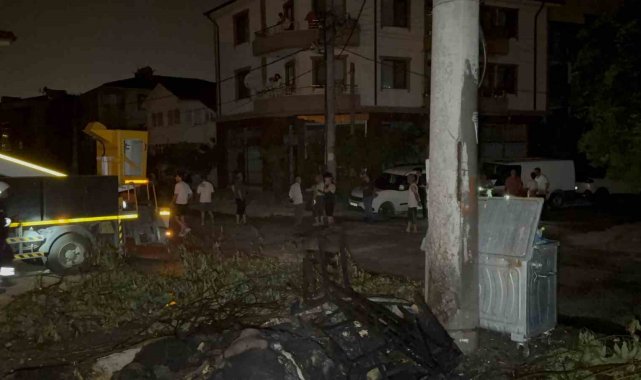 Düzce'de elektrik direğinin dibinde çıkan anız yangını kablolara zarar verince 20 bin nüfuslu mahallenin elektriği kesildi.