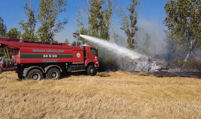 Edirne'nin Eskikadın köyü yakınlarında hasat edilmiş buğday tarlasında başlayan yangın, ağaçlık alana sıçradı. İhbar üzerine olay yerine itfaiye ve orman ekipleri sevk edildi. Yangın, ekiplerin müdahalesiyle söndürüldü.