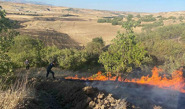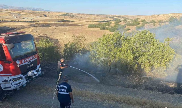 Adıyaman'da meydana gelen anız yangının bahçelere sıçraması korkuttu.