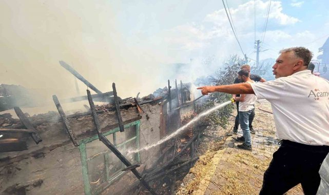 Anızda çıkan yangın asırlık düğmeli evleri küle döndürdü