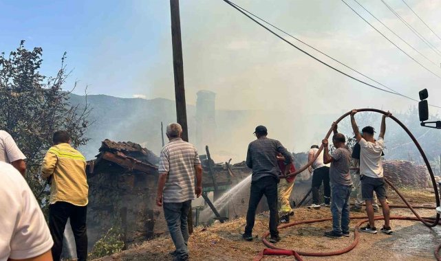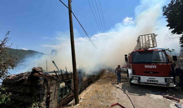 Antalya'nın Akseki ilçesinde çıkan anız yangını düğmeli evlere sıçradı. Yangında 100 yıllık iki düğmeli ev küle döndü, yakınındaki iki ev de zarar gördü.