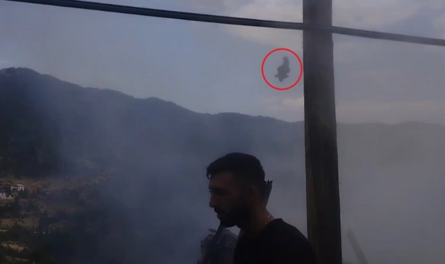 Yangın anında bir sincabın da korkup telefon direğine çıktığı ve ardından da atladığı görüldü.