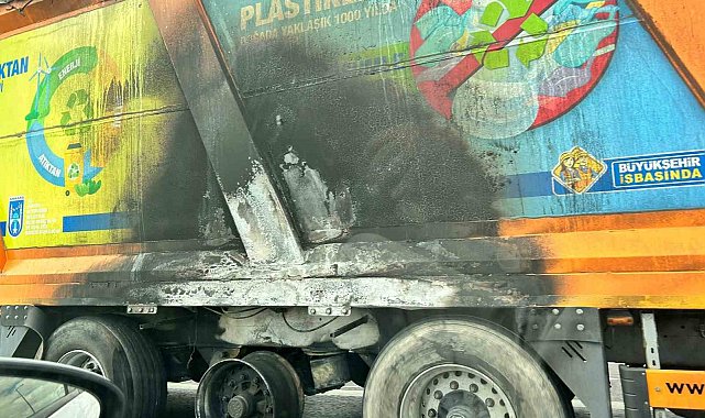 Ankara Büyükşehir Belediyesi'ne (ABB) ait plastik atık taşımak amacıyla kullanılan tırın dorsesi alev aldı.