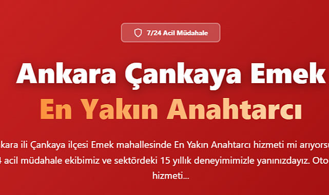 Ankara Çankaya'da acil durumlarla karşılaşmak her an mümkün olabilir. Özellikle kilitlenmek ya da anahtar kaybetmek gibi durumlar, stresli ve panik yaratan olaylardır. Bu gibi anlarda, güvenilir bir çilingir bulmak son derece önemlidir. İnsanların ihtiyaç duyduğu bu hizmeti sunan profesyoneller, hızlı ve etkili bir şekilde sorunları çözebilir. Dolayısıyla, hangi hizmeti sunan çilingirlerin güvenilir olduğunu bilmek, bu durumlardan etkilenmemek adına kritik bir adımdır. Bu yazıda, acil durumlarda nasıl bir çilingir bulmanız gerektiğini ve neden Ankara Çankaya Emek Çilingir tercih etmeniz gerektiğini keşfedeceğiz.Acil durumlarda güvenilir bir çilingir bulmanın bazı ana noktaları şunlardır: İlk olarak, kullanıcı yorumları ve referanslar üzerinden çilingirlerin güvenilirliğini değerlendirebilirsiniz. İkincisi, yerel işletmeler ile iletişime geçmek, en yakın hizmeti almanızı sağlar. Üçüncü olarak, acil durum hizmetlerinin mevcut olup olmadığını kontrol etmek önemlidir. Son olarak, fiyatlandırma ve hizmet kapsamını incelemek, bütçenize uygun bir seçenek bulmanıza yardımcı olur.Çankaya'da Acil Durumlar İçin Çilingir Seçerken Nelere Dikkat Edilmeli?Çankaya'da acil durumlar için çilingir seçerken, bazı unsurlara özen göstermek önemlidir. Öncelikle, Ankara Çankaya Çilingir arayışınızda güvenilir bir referans kaynağına başvurmalısınız. Ayrıca, çilingirin lisanslı ve deneyimli olup olmadığını kontrol etmek faydalı olacaktır. İleri teknolojik ekipman kullanımı ve müşteri memnuniyeti de dikkate alınmalıdır. İşte seçim yaparken göz önünde bulundurmanız gereken noktalardan bazıları: