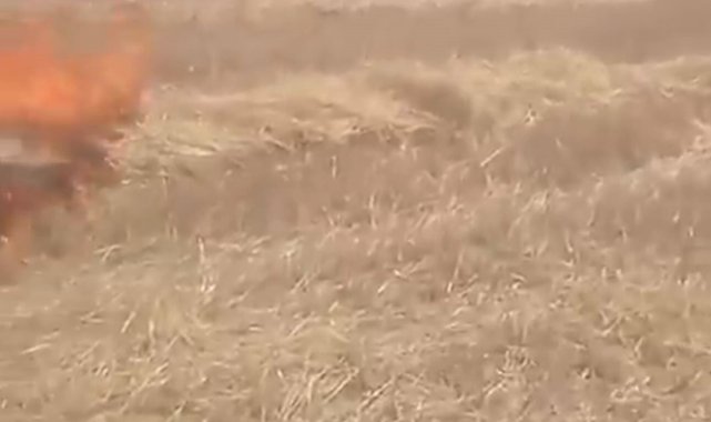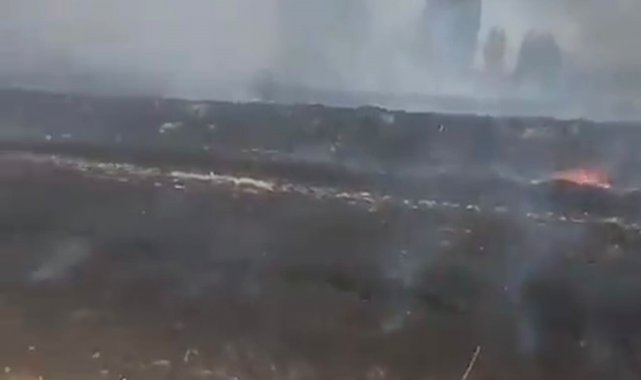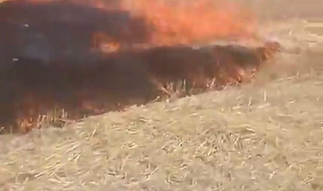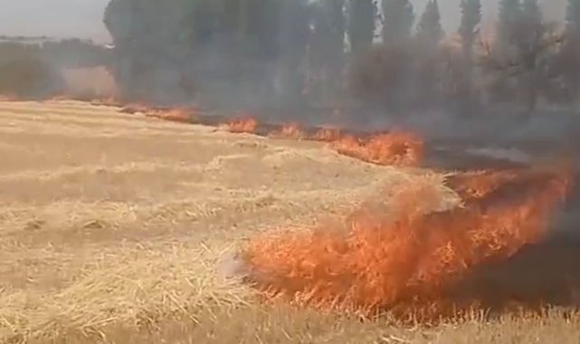 Ankara'nın Beypazarı ilçesinde bir tarlada anız yangını çıktı.