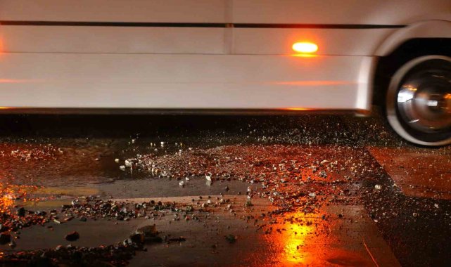 Öte yandan, hasarlı araçlar dron ile havadan görüntülendi.