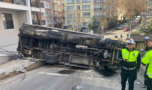 Ankara'da devrilen kamyonet güvenlik kamerasına yansıdı
