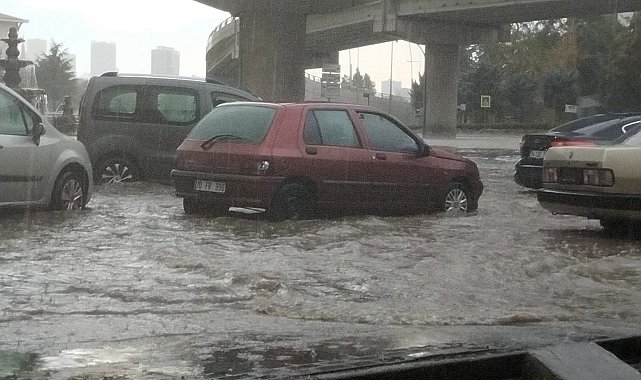 Etkili olan sağanak yağış, Yavuz Sultan Selim Bulvarı'nda ulaşımda aksamalara neden oldu. Yollarda oluşan su birikintileri sürücülere zor anlar yaşattı. O anlar ise cep telefon kaydına yansıdı.