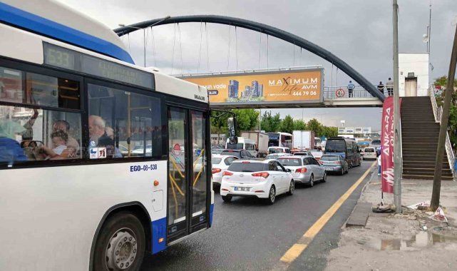 Ankara'da aniden etkili olan sağanak yağış Fatih Sultan Mehmet Bulvarı'nda trafikte aksamasına sebep oldu.