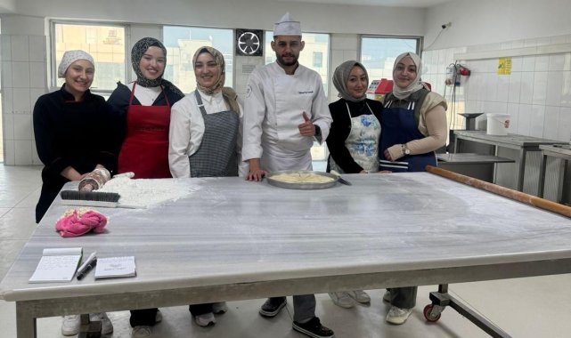 Şef Mahmut Dolmacı'ya ait baklava börek imalathanesinde gerçekleştirilen eğitimde kursiyerler; hamur hazırlanmasından iç harcın oluşturulmasına, şekil verme ve pişirme aşamalarına kadar tüm süreci birebir deneyimleme fırsatı buldu. İmalathane ortamında yapılan uygulamalar sayesinde kursiyerler mesleki becerilerini geliştirirken, hijyen ve üretim standartları konusunda da bilgilendirildi.