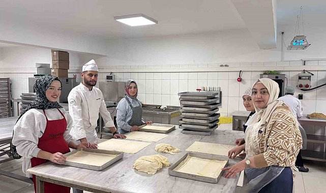 Pursaklar Belediyesi bünyesinde hizmet veren Hüma Sultan Hanım Evinde eğitim alan Pastacılık Sınıfı kursiyerleri, geleneksel lezzetlerden baklava ve böreğin hamurundan pişirme aşamasına kadar tüm süreci imalathanede uygulamalı olarak öğrendi.