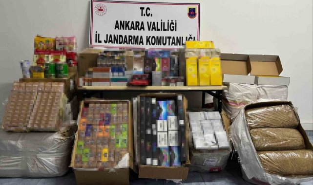 Ankara'da jandarma ekiplerince icra edilen 2 farklı kaçakçılık operasyonlarında, yurda kanuna aykırı yollarla sokulmuş fazla sayıda ve miktarda kaçak tütün, paketli sigara, gıda malzemesi ve kol saati ele geçirildi.