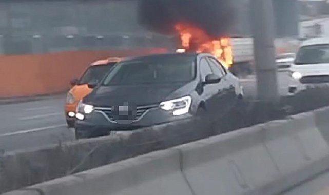 Ankara'da arızalanan kamyonun yandığı anlara ait görüntüler cep telefonu kamerasına yansıdı.