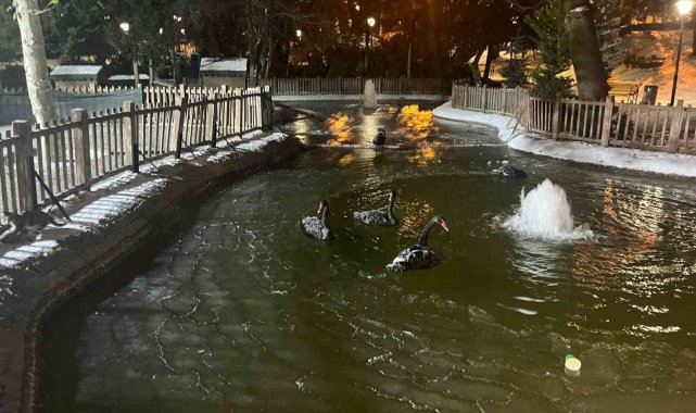 Ankara'da kar yağışının ardından hava sıcaklığı eksi 11 dereceye kadar düştü. Kentin simge noktalarından olan Kuğulu Park'ın havuzunda yer yer donmalar meydana geldi.