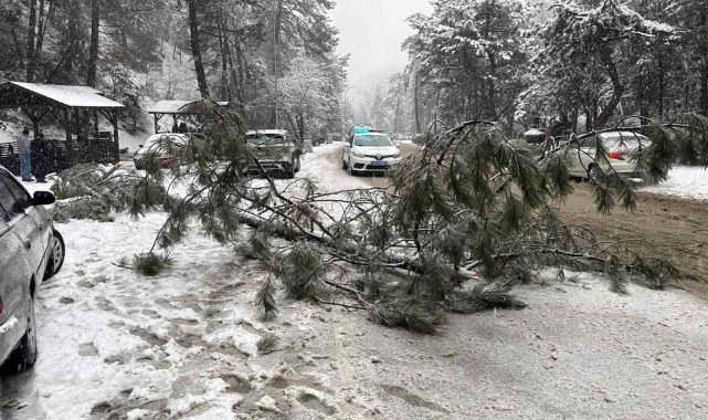 Kızılcahamam'da karın ağırlığına dayanamayan bir çam ağacı kökünden sökülerek yola devrildi. İhbar üzerine bölgeye itfaiye ekipleri ve Park Bahçeler Müdürlüğü ekipleri sevk edildi. Ekipler çevrede güvenlik önlemleri alarak, devrilen ağacı kontrollü şekilde kaldırıp, yolu yeniden trafiğe açtı. Olayda can kaybı ya da yaralanma yaşanmadı.