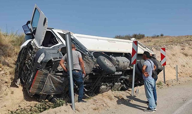 Ankara'nın Beypazarı ilçesinde sürücüsünün kontrolünü kaybettiği kamyon devrildi. Kazada sürücü hafif yaralandı.