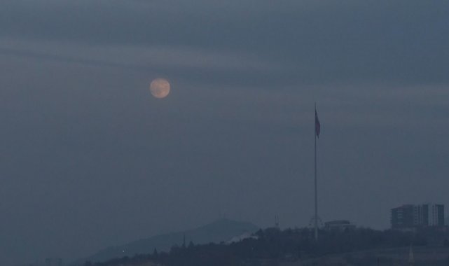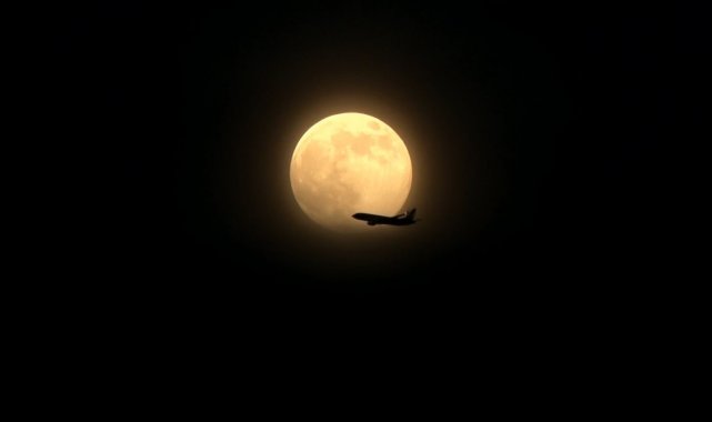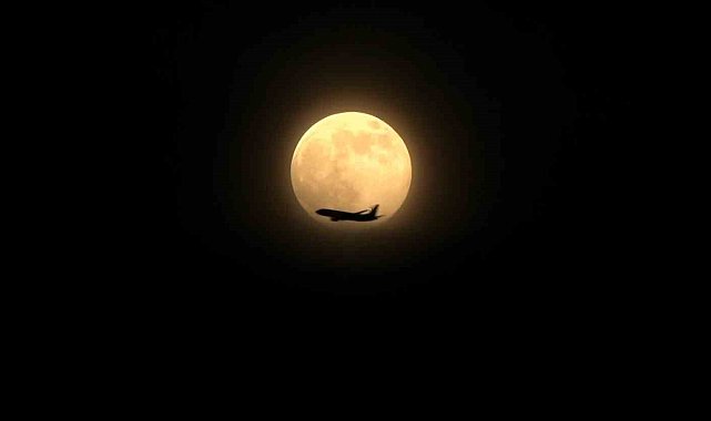 Ankara'da akşam saatlerinde Dünya'ya en yakın konuma yaklaşan Ay, normalden yaklaşık yüzde 30 daha parlak ve büyük görünerek dikkat çekti. Tam bu sırada Ankara semalarında seyreden bir yolcu uçağının Ay'ın önünden geçmesi, kartpostallık bir an ortaya çıkardı.
