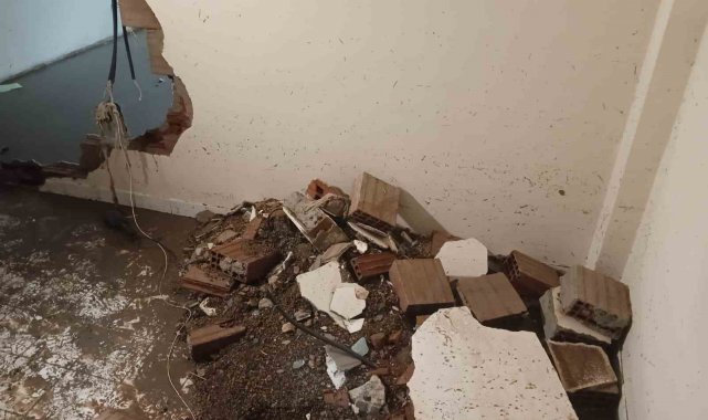 Ankara'da dün akşam saatlerinde etkili olan yağış nedeniyle Keçiören ilçesi Adnan Menderes Mahallesi 1071. Sokak'ta bulunan bir binayı su bastı. Binanın içine dolan su bir dairenin iç ve dış duvarlarını yıktı. Duvarı yıkılan bina ve yan binalarda da maddi hasar meydana geldi. Günün ağarmasıyla hasarın bilançosu ortaya çıktı. Su basan dairede maddi hasar meydana gelirken, kullanılmaz hale geldi. Ekiplerin olay yerinde çalışmaları ise devam ediyor.