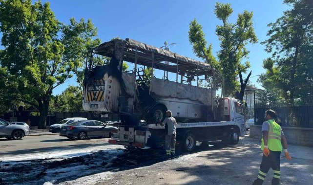 Ankara'da yanan minibüs kullanılamaz hale geldi
