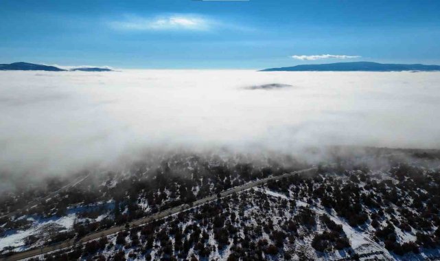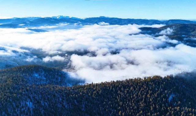 Ankara'nın Çamlıdere ilçesinde karın saf beyazı ve çam ağaçlarının yemyeşil tonları, sisin oluşturduğu gizemli atmosferle birleşerek kartpostalları aratmayan manzaralar sundu. Özellikle Kızılcahamam ve Çamlıdere gibi doğasıyla ünlü bölgelerde çekilen görüntüler, izleyenlere huzur dolu anlar yaşattı.