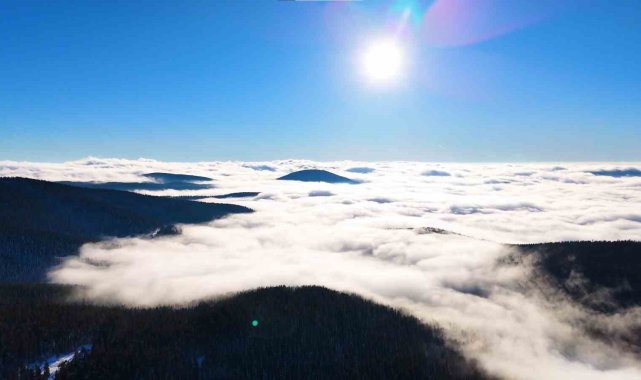 Sis bulutlarının arasından süzülen ağaçlar, zaman zaman doğanın gerçeküstü bir tabloya dönüştüğünü hissettirdi. Güneş ışınlarının sisin arasından süzülmesiyle oluşan büyüleyici manzara, doğaseverler ve fotoğraf tutkunları için eşsiz bir görsel şölen niteliği taşıdı.