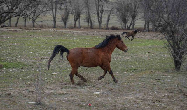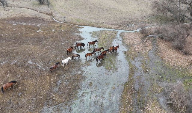 Ankara'da yaban hayatının simgelerinde olan yılkı atları havadan görüntülendi.