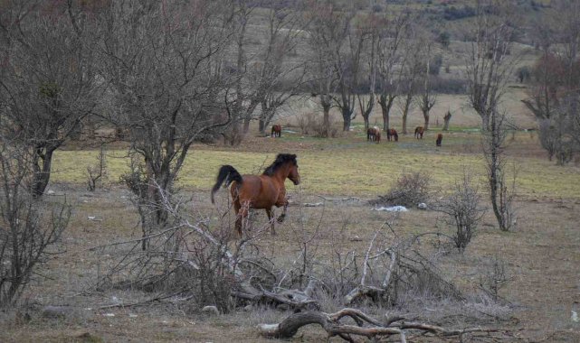 Ankara'nın Çamlıdere ilçesinin yüksek rakımlı yaylalarında yaşamlarını sürdüren yılkı atları görüntülendi. Başkent'in yaban hayatının önemli simgelerinden biri olan yılkı atları, ilçenin zorlu coğrafi şartlarına rağmen sürüler halinde yaylalarda dolaşarak yiyecek aradı. Kış mevsiminin etkisini hissettirdiği bölgede koşuşturan atlar, doğaseverlerin ve bölge halkının ilgisini çekti. Dron ile kaydedilen görüntüler, Çamlıdere'nin doğal güzelliklerini ve yaban hayatı zenginliğini gözler önüne serdi.