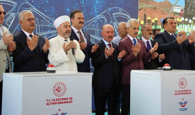 Bakan Uraloğlu'nun konuşmasının ardından dualarla hızlı tren hattının temeli dualarla atıldı.
