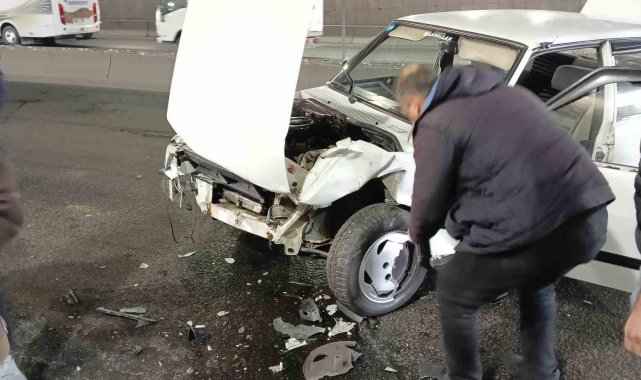 Ankara'da iki otomobilin çarpışması nedeniyle meydana gelen 14 araçlık ...