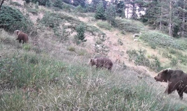 Anne ayı ve yavruları kamerada
