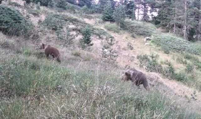 Çankırı'da doğaya yerleştirilen fotokapanlar, bölgedeki yaban hayatını gözler önüne serdi. Anne ayı ve yavruları ayının doğal ortamında yaşamı da fotokapan kamerasına yansıdı. Görüntülerde, ayıların bölgede yiyecek aradığı görülüyor.