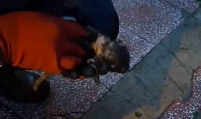 Anne kedinin getirdiği yavruya, itfaiyecinin hayat kurtarma mücadelesi kamerada