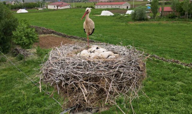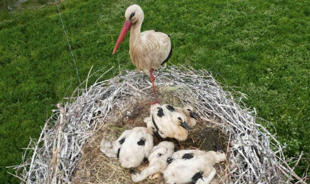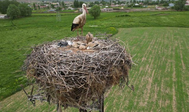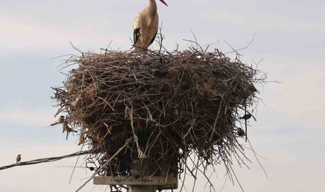 Köy sakinlerinin ilgiyle takip ettiği leylek ailesi, bu yıl da baharın habercisi olarak bölgeye geldi. Anne leylek, yavrularını güneşten, yağmurdan ve tehlikelerden korumak için adeta nöbet tutuyor. Elektrik direğine yaptığı yuvada yaşamını sürdüren anne leylek, yumurtadan yeni çıkan yavrularının başından günlerce ayrılmadı.