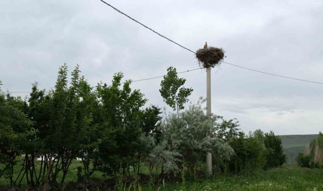 Bitlis'in Güroymak ilçesine bağlı Budaklı köyünde elektrik direğine yuva yapan anne leylek, yavrularının başından bir an olsun ayrılmadı.