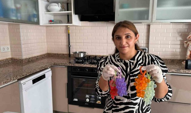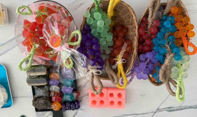 "Çin'de bu üzüm salkım sabun işini ilk olarak bir ev hanımı yapmaya başlamış. Sonra yavaş yavaş Türkiye'de yayılmaya başladı. İnternetten videoları izlemeye başladım, sosyal medya üzerinden eğitimler aldım. 'Neden Serik'te olmasın' dedim. Başta zor geliyor ama çok keyifli. Bu işin ham maddesi sabun. Şu an şeffaf sabunlarla çalışıyorum. Uçucu yağlar, boyalar kullanıyorum. Kendi hayal gücünüze kalmış bir durum. Tabii ki de cilde zarar olmayacak şekilde malzemeler seçmeniz lazım."