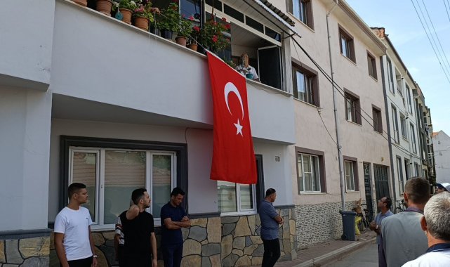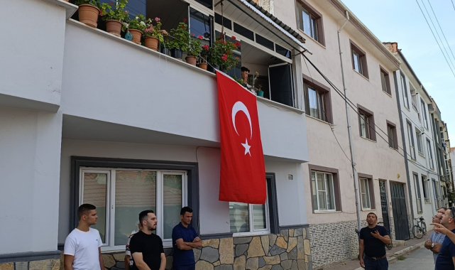 Şehit polis müdürü Muhsin Aydemir'in Mesudiye Mahallesi'ndeki baba ocağına Türk Bayrağı asıldı.